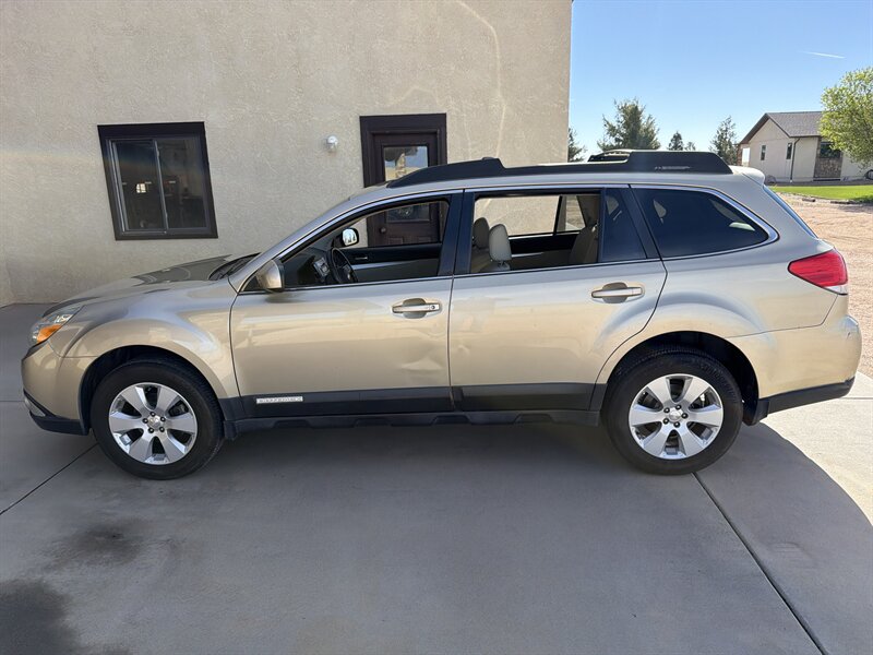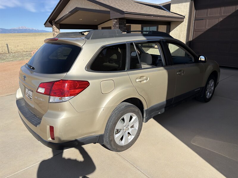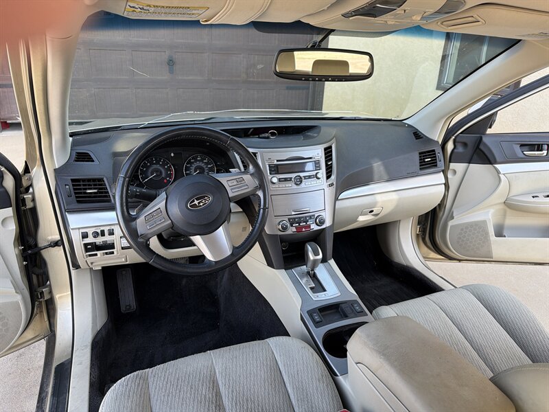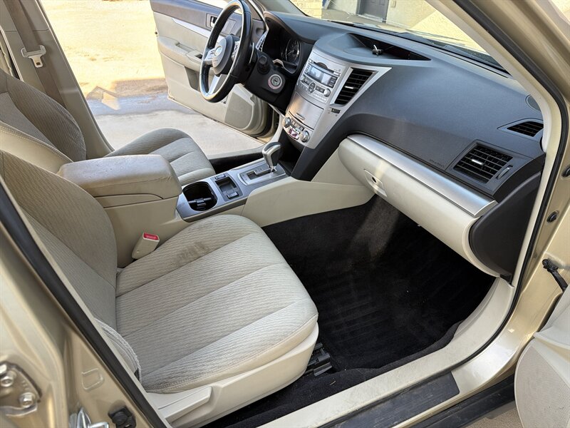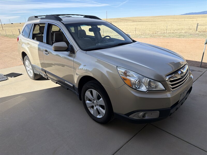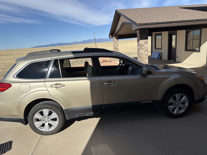 2010 Subaru Outback 2.5i Premium with the 2.5L H4 engine (170 hp, 170 ft-lb) finished in Harvest Gold Metallic with an Ivory interior. Factory features include Subaru’s symmetrical all-wheel drive, anti-lock brakes with electronic brake-force distribution, stability and traction control, front, side and curtain airbags, and a tire-pressure monitoring system. Comfort and convenience equipment includes air conditioning, power windows/locks and mirrors, remote keyless entry, cruise control, steering-wheel audio controls and an AM/FM/CD player with auxiliary input; cargo flexibility is provided by roof rails with integrated crossbars and a 60/40 split-folding rear seat. This example has under 120,000 miles, averaging less than 8,000 miles per year.